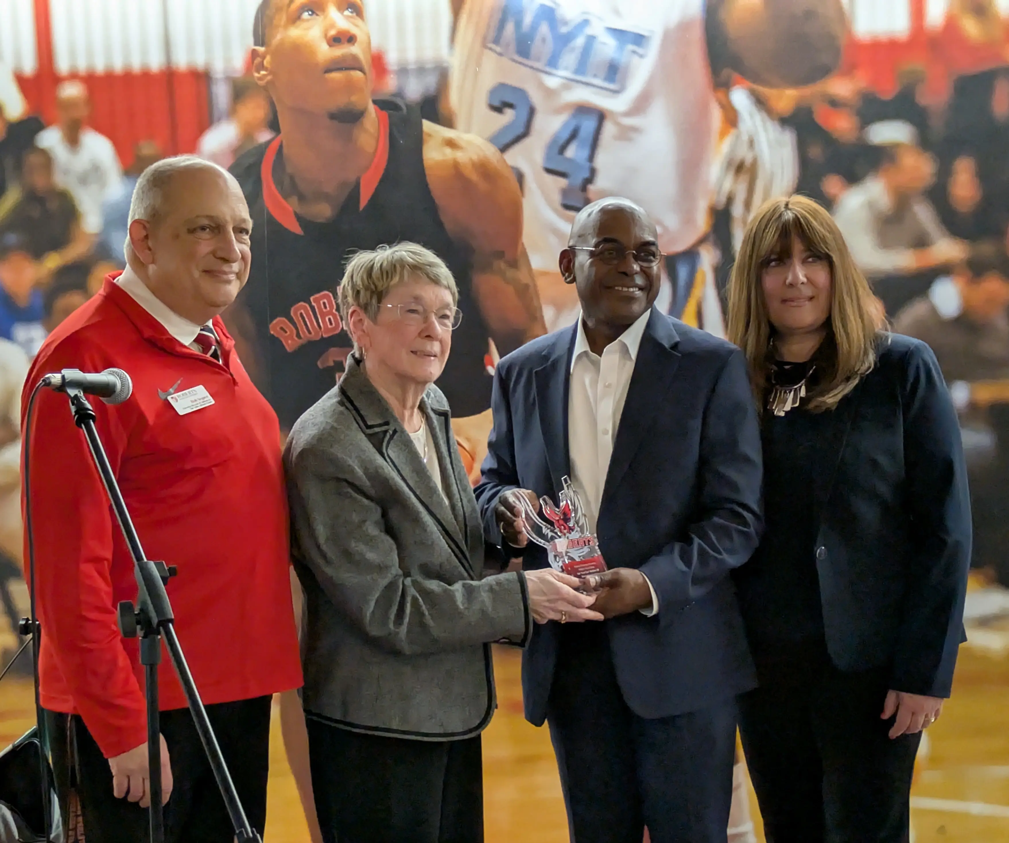 The ceremony took place during The Reggies, Roberts Athletics’ annual awards celebration, where student-athletes, alumni, coaches, and families gathered to honor both present achievements and lasting legacies. This year’s Athletic Hall of Fame inductees, Kendra Zaffuto and Susan “Aunt Sue” Harkins, represent two remarkable expressions of what it means to be a Redhawk.