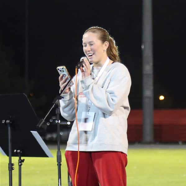 Fields of Faith is an event run by the Fellowship of Christian Athletes (FCA). It is a time for students across campus to come together and celebrate their shared faith, and to hear from fellow student athletes, as well as a main speaker. This year's keynote speaker was Coach Sim Heard. Coach Heard based his talk on Acts 27, speaking about the many storms in life that we will face as Christians. His message touched the hearts of many students, including mine. This year, the student speakers were junior Brad Cantrell and senior Morgan Burnett. They both shared their stories of how God has been working in their lives.