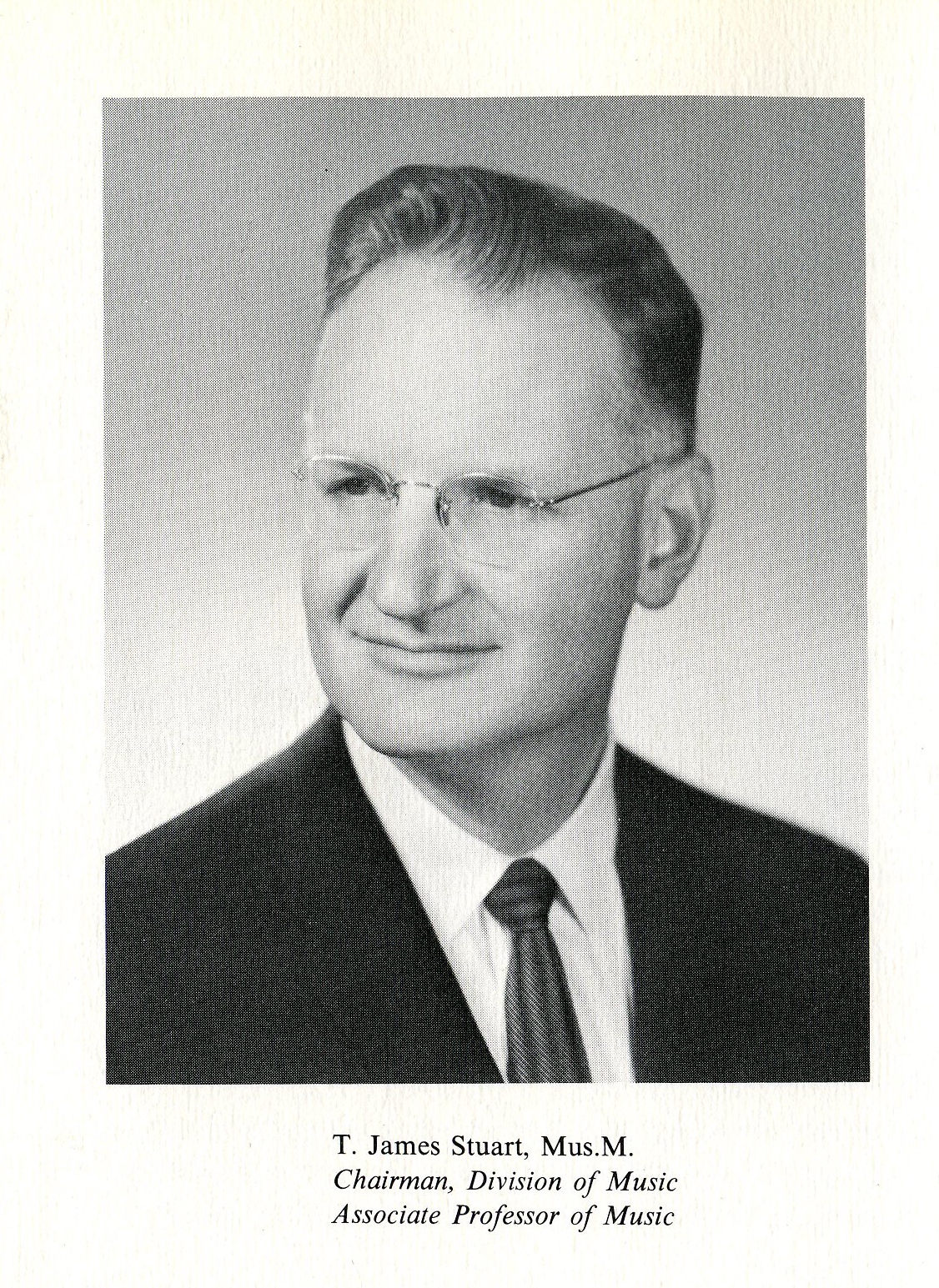 Dr. Stuart studied locally at the Eastman School of Music and University of Rochester, receiving the degree of Master of Music in 1952. He served at Roberts for over 30 years as Associate Professor and Chairman, Division of Music. During this time he completed doctoral studies.