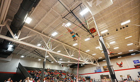 It's not every day that an Olympic Gold Medalist is a coach at a university. Jenn Suhr '04 (Psychology) is the assistant coach of the track and field team working with pole vaulters.