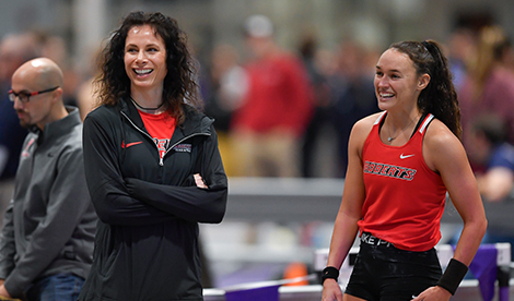 King, who is from Texas, is a transfer student from Duke University who started at Roberts in fall 2023. King chose Roberts to be coached by Assistant Men's and Women's Track and Field Coach Jenn Suhr to help her advance in pole vaulting, and together that is what they have done.