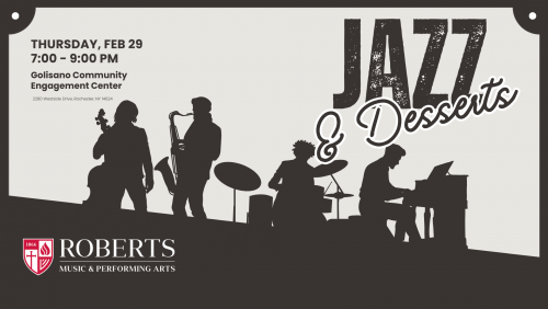 Music and Performing Arts invites you to their annual Jazz & Desserts event! Enjoy an evening of incredible music featuring our talented jazz students and faculty while also enjoying some delicious local desserts and beverages.